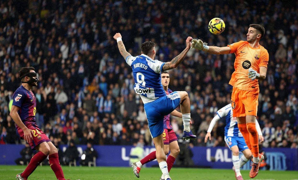 巴萨能够最终带走三分,门将霍安·加西亚功不可没,他全场贡献了多达6次精彩扑救,力保球门不失。第18分钟,西班牙人前锋费尔南德斯获得单刀机会,面对来势汹汹的推射,加西亚冷静地用腿将球挡出;第40分钟,他又如同神兵天降般飞身扑出了米拉近在咫尺的头球攻门。若非他如铜墙铁壁般的表现,巴萨恐怕早已陷入被动,胜负天平也将倾斜。